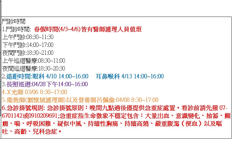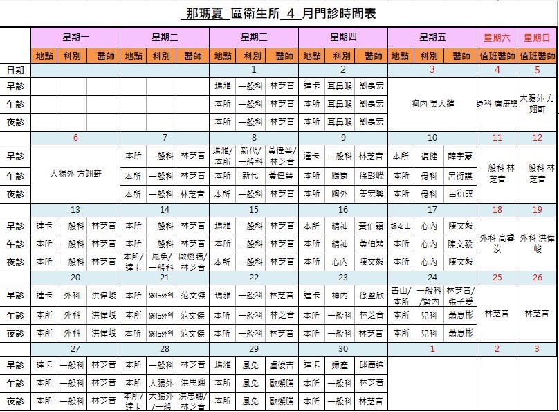115年04月門診表及遠距醫療門診表