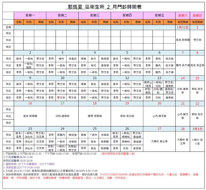115年02月門診表及遠距醫療門診表